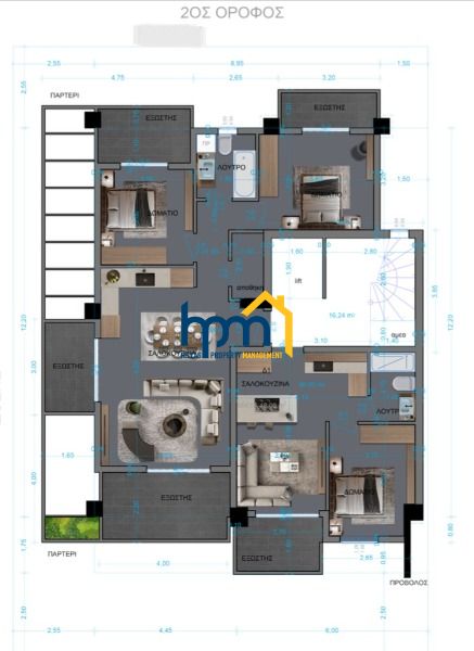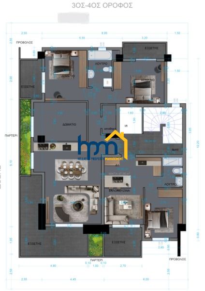 Triandria - Doxa for sale Apartment 110sq 4th floor Vacation house Neoclassical Luxury construction year 2024 Newly built , consists of 3 Bedrooms 1 undivided kitchen 1 WC 1 bathroom 1 parking . Its heating is individual with Natural Gas ,air condition ,flooring ,solar boiler and Fireplace . It also has storage space ,Armored Door ,alarm ,Door video ,Terraces , Corner ,Elevator ,Playroom ,Double Glazing ,Triple Glazing ,Internet ,pets allowed . Price (360000€) Property Code 205712 ( ) Hellas Property Management ,Office phone: 2310 458030 , 6972875195, Working Hours: 09:00 - 21:00