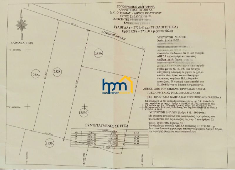 Ormilia for sale Land 2730sq , with facade 28sq and depth 100sq , ,Fenced ,Amphitheater ,Triple view ,Investment Area , Land use :Arable land, City plan :Outside city plan. Price (49000€) Property Code 207391 ( ) Hellas Property Management ,Office phone: 2310 458030 , 6972875195, Working Hours: 09:00 - 21:00